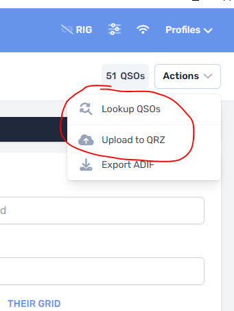 Once your configured. Go ahead and make some contacts and log them. When your done for the session. Hit actions in HamRS and click upload to QRZ.
