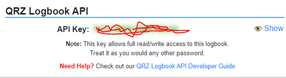 To get started you first need to obtain your API Key from QRZ under the logbook settings page.
